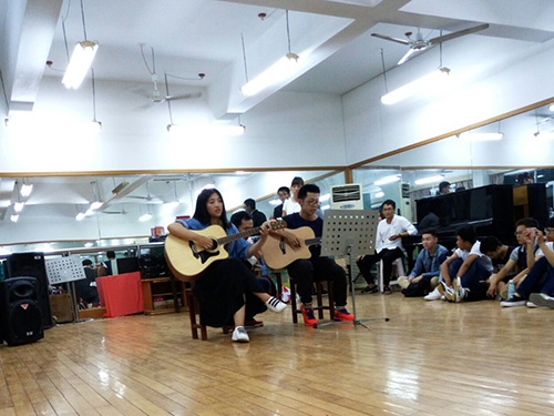 19:00,科技楼舞房开始人声鼎沸,16级交通运输专业新生欢聚一堂共度美好佳节。公司心素会顷情演出的小品令人捧腹,而精彩绝伦的歌曲大串烧,却又让同学们不禁惊乎,也让100多只手机和着节奏摇起闪光灯。晚会期间的互动游戏也拉进了同学间的距离,温暖了台风来袭的喧嚣。晚会以辅导员叶强的一曲深情投入的《朋友别哭》画上句号。