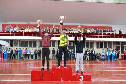 随后,罗玉峰为本届田径运动会团体奖第四、五、六名颁奖,并由万明颁布田径运动会总分前三名。