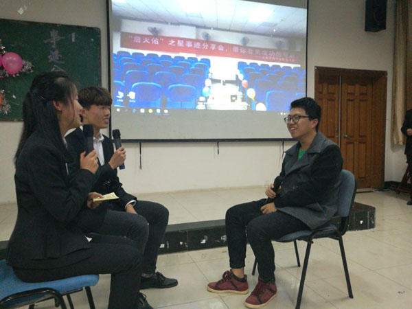 随后,各名“詹天佑”之星分别为同学们讲述自己的经历和对学习、生活的经验,科技之星江睿智应全场的要求带来了一段即兴舞蹈,现场气氛顿时活跃了起来;创新创业之星李孝康不断强调积淀、沉潜的重要性,永远保持一颗学习的心方能永远进步;文艺之星张子尧作为“十佳歌手”用一首《依然爱你》征服了全场的心;体育之星丁昌分享了田径队给他带来的很多东西,比如健康的身体、顽强的意志,在场的同学都受益匪浅。同时他们也与在场的同学进行了精彩的互动,参与互动的同学也收到了带有各位“詹天佑”之星的亲笔签名的明信片作为奖励。