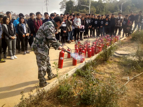 活动开始前,保卫部成员已将数十瓶灭火器,燃油,以及木柴准备好。蔡卫平首先就开展本次活动的目的进行了阐述,并宣布活动正式开始。之后,李咏洁以“消防安全,细节为先”为主题,为保卫部成员及大一的各位班长讲解了一些基础的消防安全知识,并为他们展示如何正确使用不同类型的灭火器。随后的“真枪实战”完全激发了在场大一新生的热情,在李咏洁老师的指引下,各大一新生轮流使用灭火器进行灭火,每次的灭火成功,都让体验者倍感畅快。整个活动过程以轻松愉悦的氛围开展了严肃认真的消防演练,并让全体大一新生都有所收获。