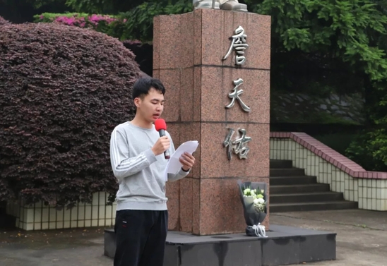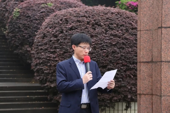 随后由员工代表陈建辉发言,他呼吁同学们一同缅怀詹天佑先生为国家铁路建设所建立的不朽功勋,追思他为国家富强和民族复兴而不懈奋斗的光辉生涯,他表示身为天佑学子、作为天佑传人的我们更应传承天佑精神、肩挑天佑使命、追随天佑脚步不断前行。在发言的最后,他借此次机会表达了对詹天佑先生的尊重和敬仰,愿同学们不忘交大栽培,不辱天佑使命,无愧天佑传人。