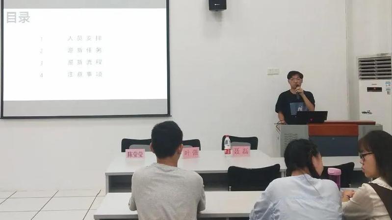 会议伊始,叶老师代表学院、学工办感谢全体工作人员的加入与付出。同时,他也对迎新工作人员提出几点希望,并对迎新工作做出几点要求。