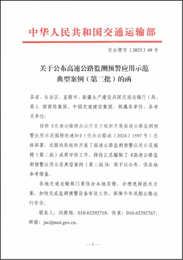 近日,交通运输部公布了第二批高速公路监测预警应用示范项目清单,公司马飞虎老师团队与江西省交通设计... 2025-01-26查看详细
